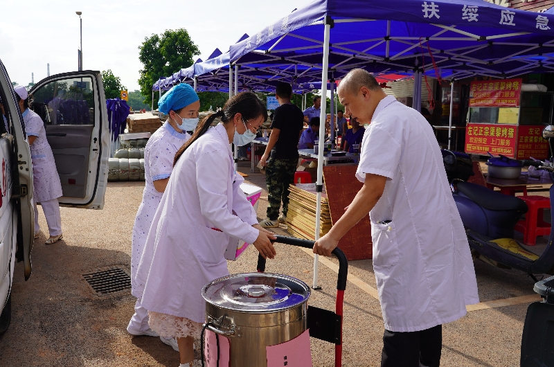 为了有效支持抗洪抢险,保障一线工作人员身体健康,9月11日下午,附属瑞康医院空港院区为扶绥大江口沿线抗洪一线的工作人员和群众送上祛湿排毒中药汤药。此祛湿排毒中药方剂是由医院空港院区肺病科主任、广西青年岐黄学者培养对象冯原教授精心研制,具有健脾祛湿、清热解毒的功效。