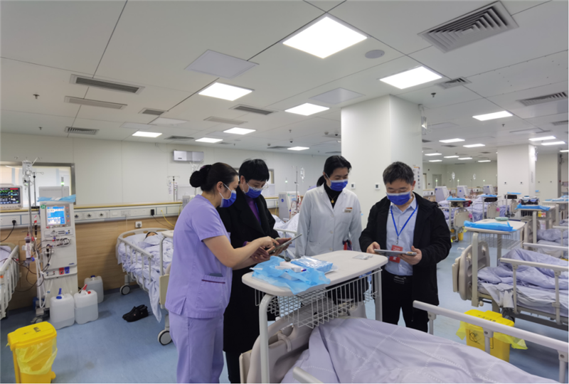 专家组成员来到血透室实地走访,按照血透质控评价标准对血液净化中心的基础设施、人员岗位设置、护理、质量与安全管理、院内感染控制等多方面进行全面细致的检查及资料审阅,专家组将检查发现的问题进行现场反馈,并给予指导性意见和建议,同时专家组肯定血透室在信息化管理下对病人的管理充分到位,其优秀的管理经验将择机在全区范围内推广。医院也借此次机会提出了在血透工作中遇到的困难和问题,专家组为其一一解答或给予相应的建议和意见。