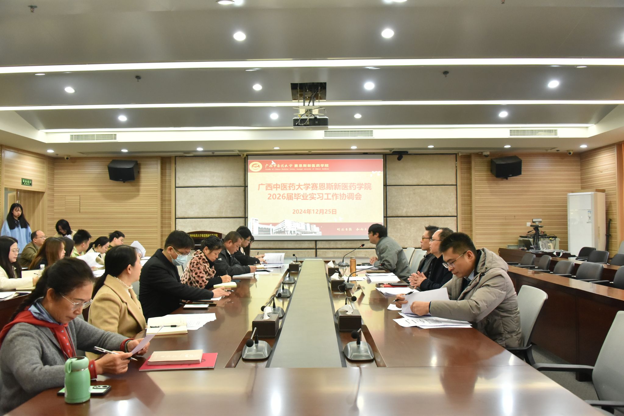 为确保2026届毕业实习工作有序开展,12月25日上午,赛恩斯新医药学院在教学综合楼第二会议室召开2026届毕业实习工作协调会。赛院党委副书记宋南、副院长杨仕权,教务处及相关部门(系部)负责人,2026届毕业班辅导员等人参会。