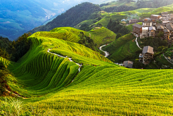 该作品分为“田园风光——秀美广西”“逐梦新时代——青运会”两组,描绘了广西山水田园如画如诗,层层梯田洋溢秋天丰收的喜悦,展现了壮乡人民的勤劳智慧、八桂大地的秀美山河、广西发展蕴藏的生机与活力。