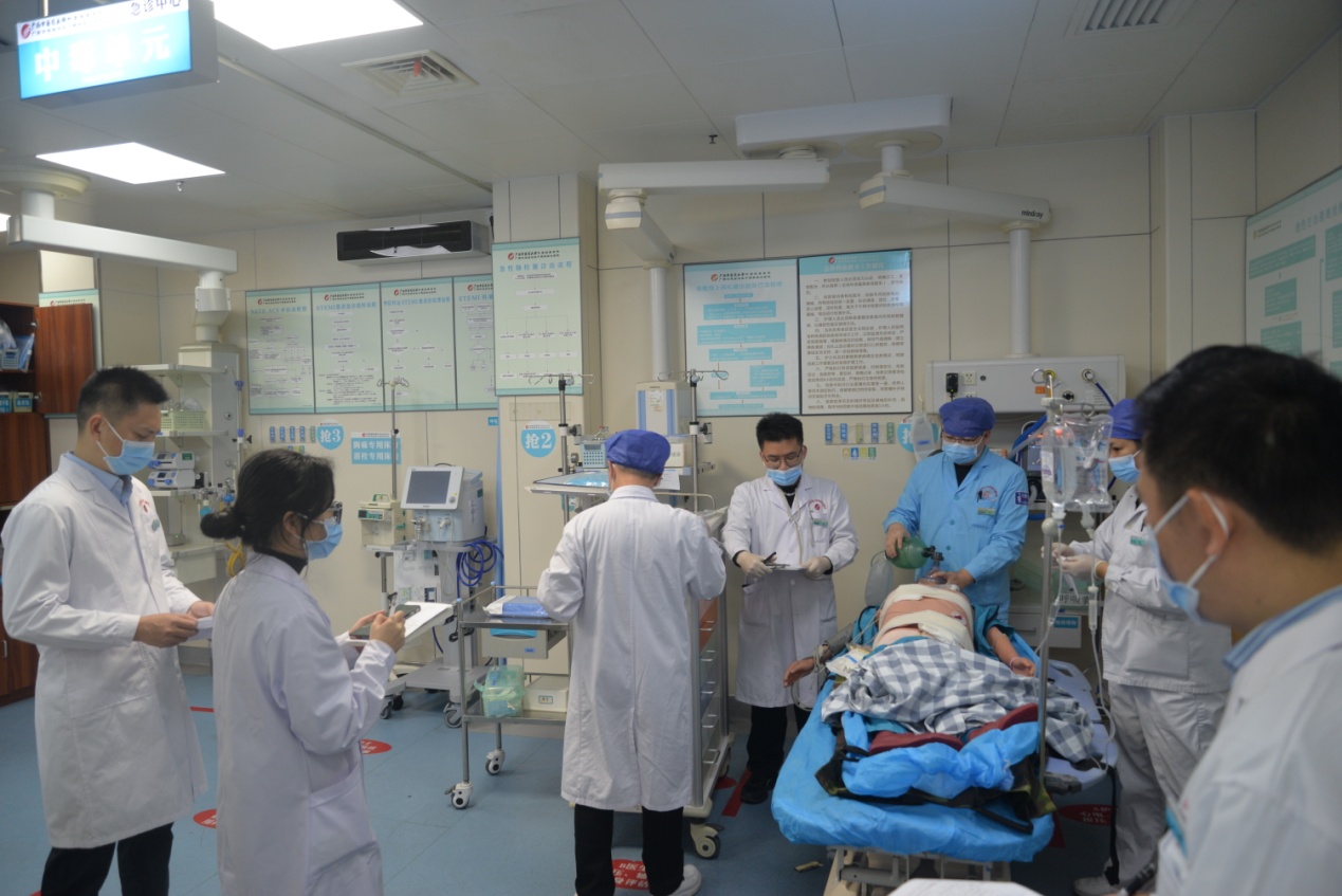 为进一步提高急诊急救医疗服务水平和医疗质量安全,强化医务人员对严重创伤患者的救治水平,优化科室间抢救协调配合流程,进一步推进创伤中心建设工作,1月3日下午,附属瑞康医院在急诊科组织开展了一次严重创伤救治的应急演练活动。此次演练由医院副院长郑东林、韩杰共同主持,医务部组织各科室骨干医护人员参与,共同观摩了这场紧张而有序的演练过程。