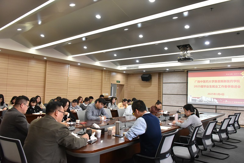 3月4日下午,赛恩斯新医药学院在教学楼第二会议室组织收看2025届全国高校毕业生春季学期就业重点工作推进视频会,并结合工作实际,召开赛院2025届毕业生就业工作春季推进会,迅速传达部署会议精神,以问题为导向,明确下一阶段任务目标。赛院党委书记肖华业,党委副书记、院长祁文,学院党委副书记宋南出席会议。