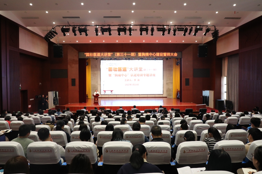 3月24日,广西国际壮医医院举办“国壮医道大讲堂”(第三十一期)培训班,邀请国内心血管领域权威专家、广西心血管系统疾病质量控制中心主任委员、广西医科大学第一附属医院党委书记李浪进行专题授课。医院党委书记秦祖杰,党委副书记、院长黄国东及在家领导班子成员、全体中层干部、各(部门)科室代表、护理人员及规培学员、实习生参会。