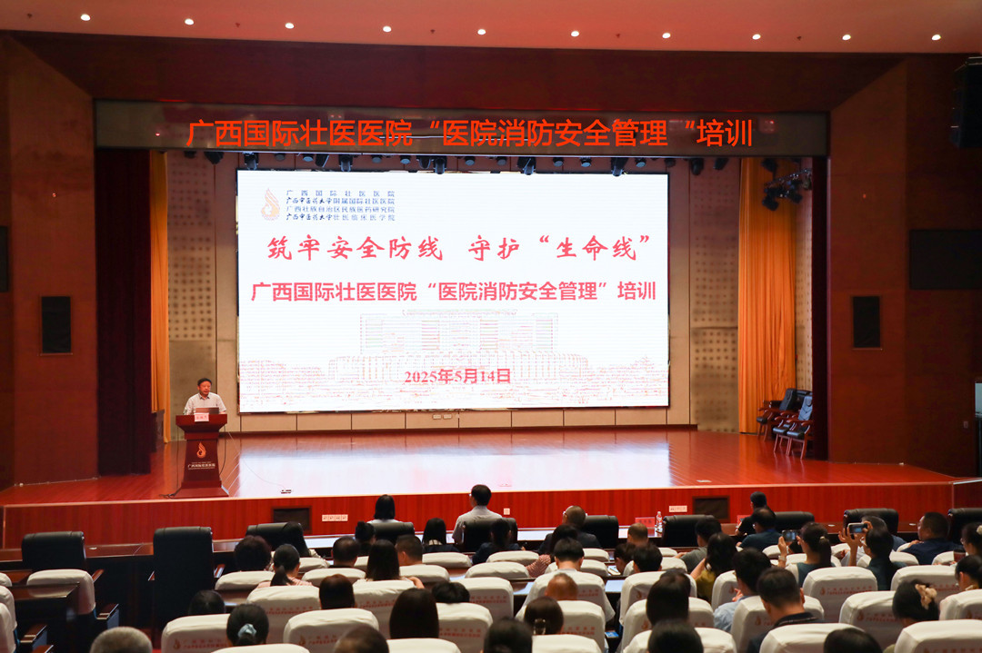 为进一步增强医院全体人员消防安全意识和应急处置能力,5月14日下午,广西国际壮医医院举办“医院消防安全管理”培训会,特邀广西桂澜消防职业培训学校五一校区校长付子洋教授来院做专题授课。医院党委书记秦祖杰、副院长陈日兰、纪委书记陈俐等在家领导班子成员出席,各部门(科室)管理人员、安全员、规培学员、研究生、实习生、第三方公司管理人员参加培训。