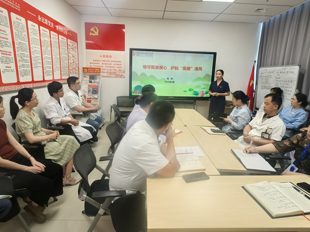 为进一步加强医院党风廉政建设,提升医院医护人员廉洁从业水平,营造风清气正的良好氛围,6月3日,广西国际壮医医院医院纪委到肿瘤科开展廉洁教育进科室活动。医院纪委书记陈俐、副院长张荣臻及行风办、纪委办、肿瘤科等20余人参加。