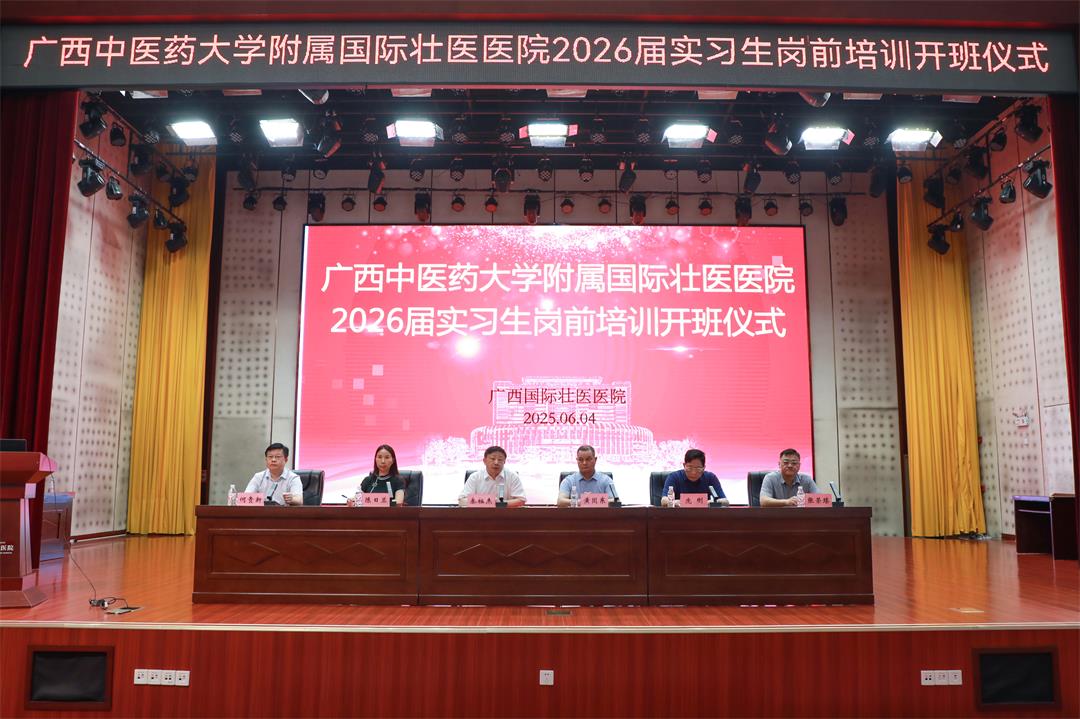 6月4日上午,YABO鸭脖附属国际壮医医院举行2026届实习生岗前培训班开班仪式,迎接329位实习生来院实习。医院党委书记秦祖杰,党委副书记、院长黄国东等院领导参加。
