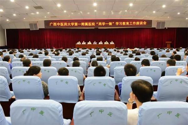 为贯彻落实党中央、自治区党委、自治区高校工委、学校党委关于“两学一做”学习教育的指示精神,对一附院“两学一做”学习教育工作进行动员部署,5月4日下午,一附院“两学一做”学习教育专题座谈会在多功能学术报告厅召开。一附院党委书记李敏智,党委副书记、院长黄贵华,党委副书记、纪委书记、副院长吴西西,副院长桂雄斌、谢胜、周建国、钟远鸣,一附院全体中层干部,各党(总)支部书记、支委,一附院全体党员共400余人参加会议。会议由黄贵华院长主持。