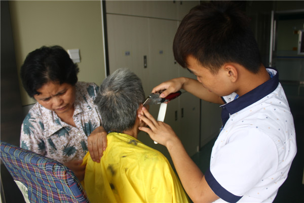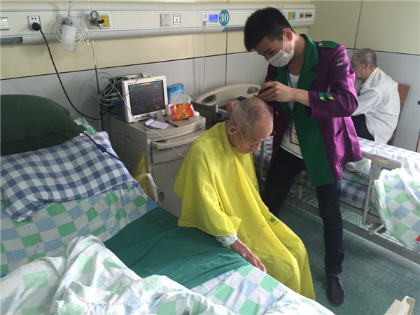 据了解,医院住院部有很多患者,如神经内科有住院长达数月的患者、老年病区有卧床不起的年老患者……这些患者大多久卧病床且行动不便,理发成为他们的一个难题,加之进入夏季,气温升高,日渐增长的头发造成病人不便。于是,医院团委、医疗服务部、青年文明号集体主动联系了理发机构,免费为患者提供理发服务,切实为住院患者解决难题。