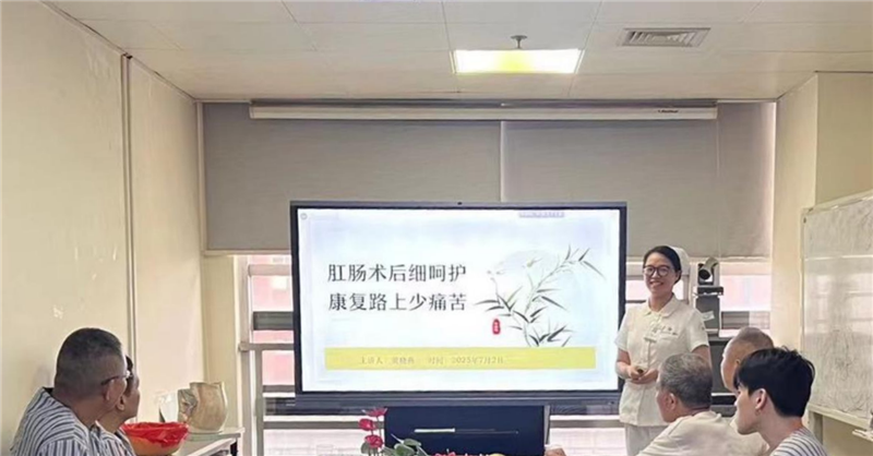 7月2日下午,第一附属医院肛肠外科在住院部10楼举办了一场别开生面的健康科普讲座。本次活动以“传承有道·护肛有方”为主题,由护士长陈芳芳主持,科主任黄深、主管护师黄晓燕主讲,吸引了众多患者及家属积极参与。