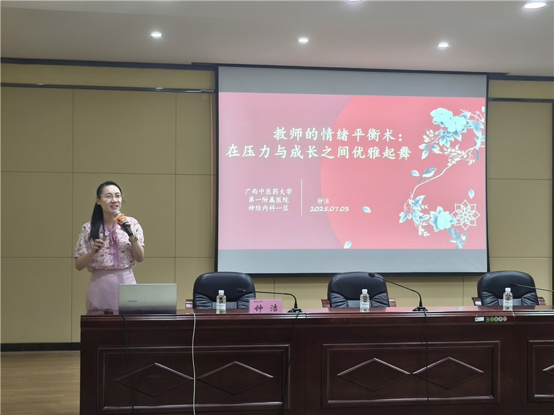 7月3日上午,第一附属医院东葛院区健康体检中心应邀组织心理专家团队走进广西物资学校,面向该校全体教职工开展了主题为《教师的情绪平衡术:在压力与成长之间优雅起舞》的专场心理健康讲座。