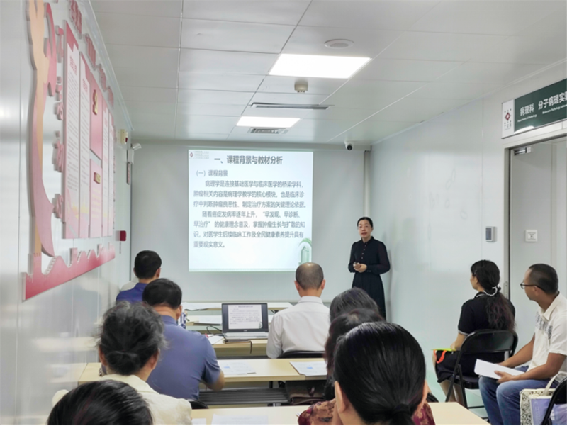 备课开始前,罗伟生强调了教学质量提升的重要性,指出集体备课是汇聚集体智慧、共享教学经验的宝贵途径,对于教师个人成长与教研室协同发展至关重要。随后,教研室黄秋霞老师就《肿瘤的生长与扩散》进行了系统说课,内容涵盖教学目标、重难点分析、教学方法与BOPPPS教学设计等。在集体研讨环节,教研室全体教师积极参与,围绕教学内容、教学方法、课堂组织、课程思政、教育现代化手段等方面展开深入交流。