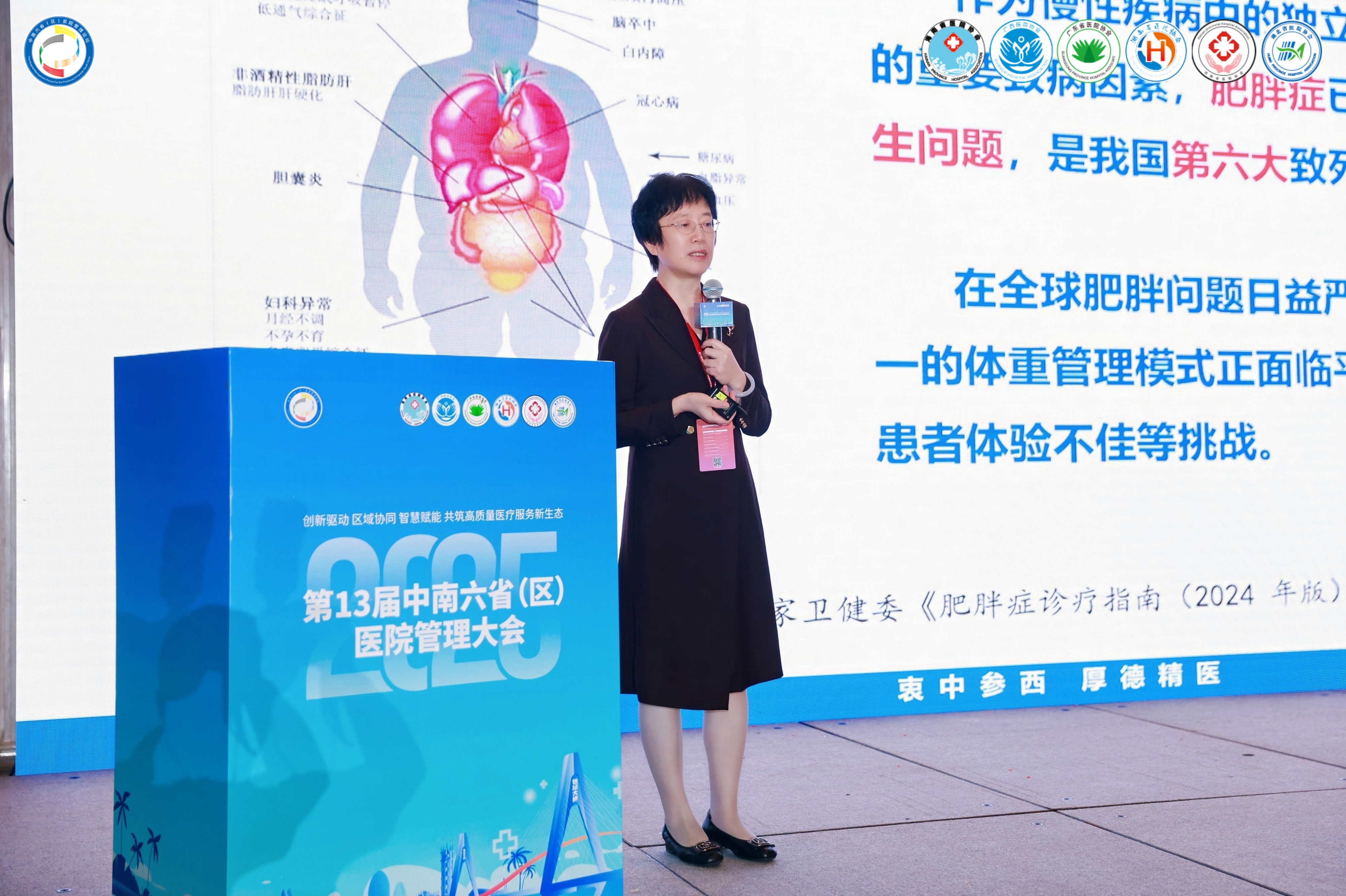 在“聚焦健康管理,共话学科发展”专题会议上,唐红珍以《中西医结合体重管理中心建设的实践与思考》为题进行专题授课,系统分享了医院在该领域的实践成果。她介绍,医院构建了“以中医为指导的中西医结合三位一体”体重管理新模式,强调内调外治、标本兼治,形成“调体质→减体重→防反弹”的闭环管理体系。该模式不仅关注体重的短期下降,更注重患者体质调理与长期健康维护,在全国体重管理中心建设中展现出显著的中西医整合特色与推广潜力。