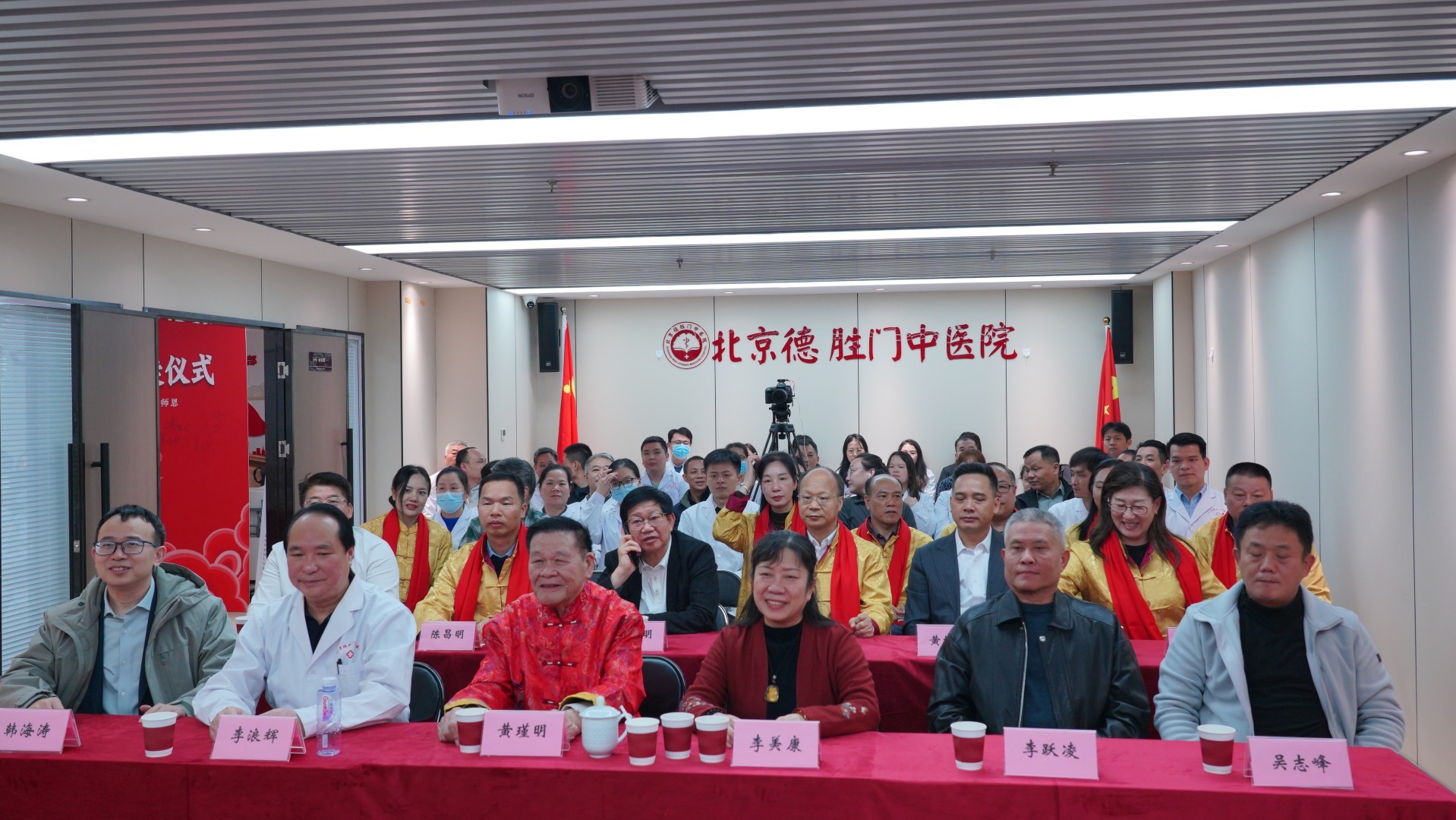 同日下午2时,团队一行转赴北京市德胜门中医医院继续开展指导交流,并举行“国医大师黄瑾明教授在京收徒仪式”。仪式上,十名北京的中青年中医医师正式拜入黄瑾明教授门下,成为壮医针灸传承的新生力量。黄瑾明教授在随后的授课中以《壮医学发展的历史新阶段:壮医学谷道病辨证论治》《壮医天阴阳针法》为题进行讲解,为弟子们打开了壮医学研究的新视野,助力他们在传承壮医学的道路上稳步前行。