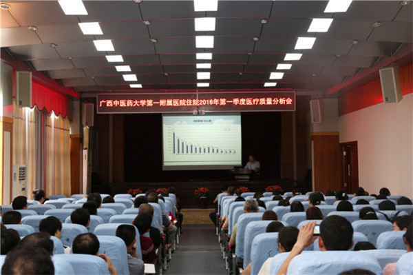 为总结经验分析不足,促进医疗质量改进,确保医疗安全,提高医疗服务满意度,2016年5月25日下午,在一附院医技楼七楼第一会议室召开2016年第一季度医疗质量分析会。一附院院长黄贵华、副院长桂雄斌出席会议并听取工作汇报。医务部、护理部、院感科、医保办、预防保健科、输血科及药学部等相关职能部门负责人和各临床、医技科室主任、护士长共100余人参加了本次会议。会议由桂雄斌副院长主持。