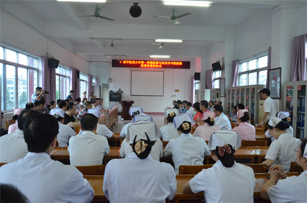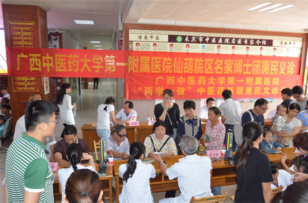 此次签约挂牌活动,一附院各临床科室的专家博士团举行一系列专题讲座、专家查房、手术示范、惠民义诊等技术合作和学术交流活动。19日晚为来宾市中医医院全体医务人员和部分县级医院基层医师举办了两场专题学术讲座。黄贵华教授讲座题为《几种临床常用化学药物的中医认识》,王政林教授讲座题为《抗生素临床应用规范思路和新动态》。两场讲座均切合基层临床需求,同时在新思维和前沿信息方面有创新括展,既有实用性也具备很强的理论指导作用,对基层启迪帮助很大,深受基层医务人员欢迎。20日上午,一附院专家团队的肿瘤科荣震、神经外科张高炼、儿科李伟伟、泌尿外科李峰、心血管内科杨清华、心胸外科莫安胜、脾胃病科梁雪、康复医学科张冲、脑病科张青萍、创伤科刘鹏飞、耳鼻喉科李艺以及护理专家韦衡秋等专家进行了专科建设指导、优质护理工作指导、专家查房、手术示范、惠民义诊等活动,对医院和科室管理建设进行了指导,针对基层临床的薄弱环节进行了指导纠正,指明了基层专业技术发展的努力方向。群众听闻省级三甲中医院的名医专家前来义诊,奔走相告,络绎求诊。共诊治群众300多名。
