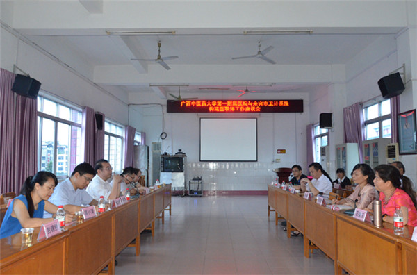 签约仪式后,一附院与来宾市卫计系统代表进行了座谈,对医联体建立后的各项工作进行了深入探讨。我院领导和职能部门、来宾市卫计委领导、来宾市中医医院领导和参联各县级医院领导纷纷发言,对医联体的全局规划、工作方向充满了信心;对医联体的运作方式,提出了具体和中肯的意见和建议。医联体各方均同意,成立常设领导机构和联络机构,拟定具体工作步骤、年度工作目标和措施,推进具体的工作进度。来宾市卫计局领导表示,十分乐意成为医联体各参联方的桥梁,协调好各县的卫计委,细化工作措施,实现各县医联体的差异化建设。