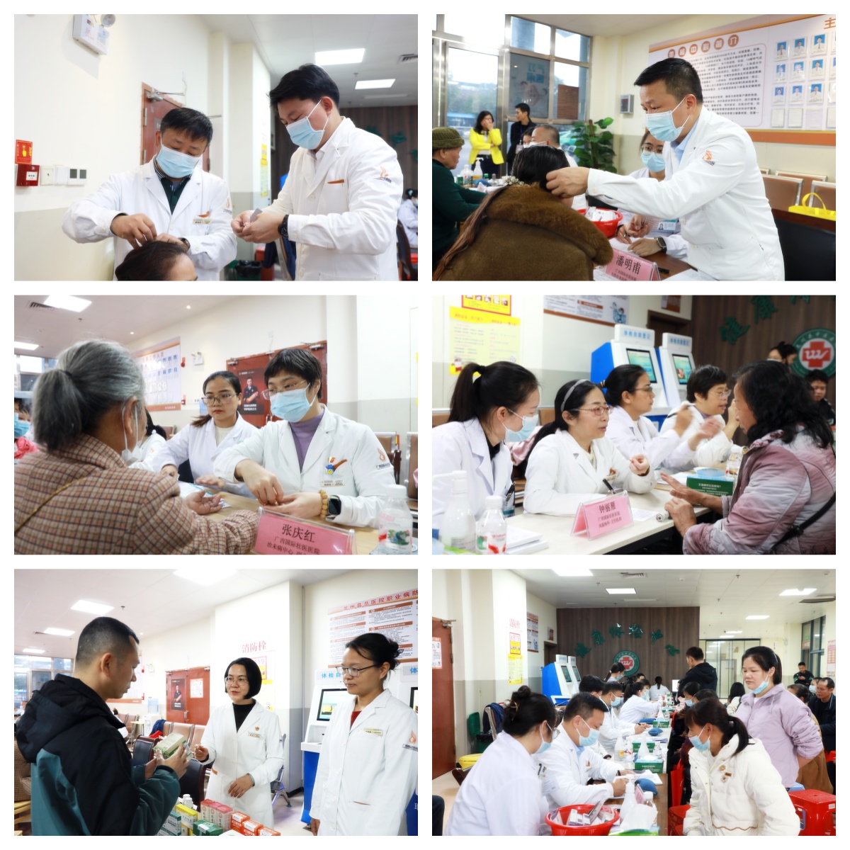 带教查房结束后,专家团队随即展开健康义诊。秦祖杰、潘明甫、梁树勇、张庆红、钟丽雁等专家耐心接诊,细致问诊、辨证施治,为有颈肩腰腿痛、抑郁症、失眠、痛风等病症的患者提供个性化建议,并对适应症患者实施中壮医外治疗法。他们以精湛的医术与暖心的服务赢得群众广泛的好评。“效果真好,几针下去,半年不能下蹲的问题就缓解了!”60岁的马阿姨欣喜地说。她半年前突发下蹲困难,多次治疗未果,此次专程前来。经梁树勇主任摸经定位痛点、施行壮医火针松筋解结治疗后,她现场便能顺利下蹲。