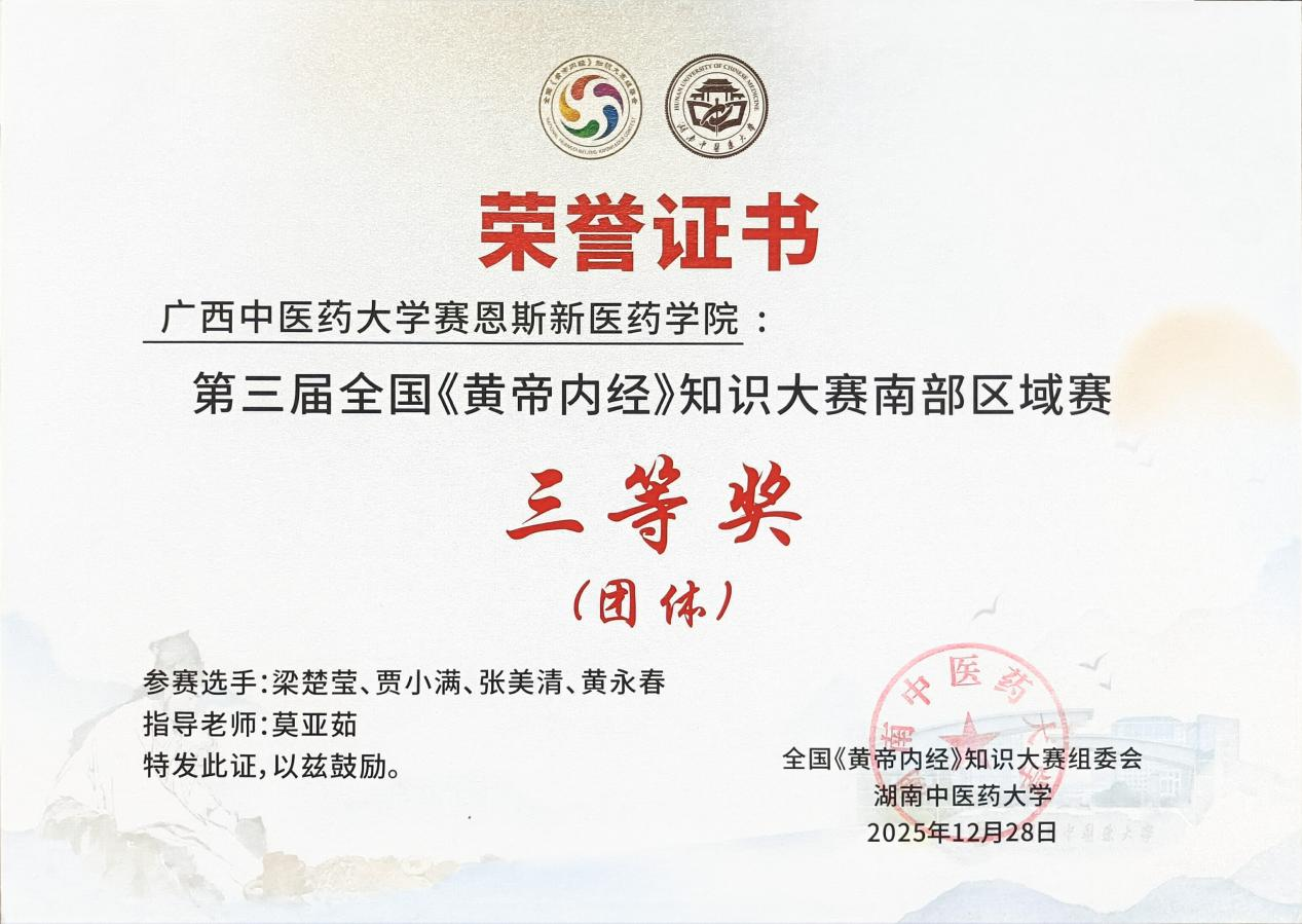 【喜讯】赛院在第三届全国《黄帝内经》知识大赛南部区域赛中获佳绩