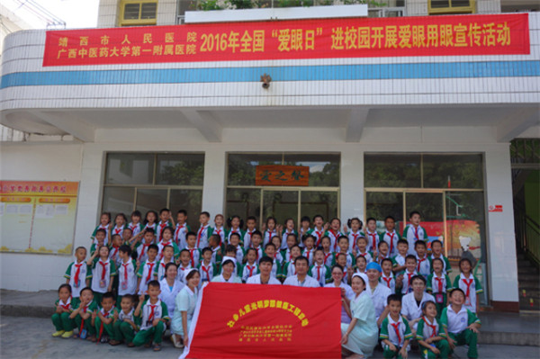 6月6日当日,广西优生优育协会儿童眼保健与眼视光分会和中国民族医药学会眼科分会在百色靖西市启动“壮乡儿童光明梦”项目,YABO鸭脖第一附属医院眼科的专家医师们和靖西市人民医院的眼科专家走进靖西新靖镇中心小学为430名一年级学生进行了儿童眼病的筛查。