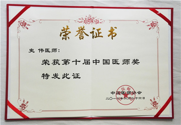 2016年6月26日,第十届“中国医师奖”在北京国际会议中心隆重举行。一附院肾病科主任史伟主任医师喜获 “中国医师奖”。