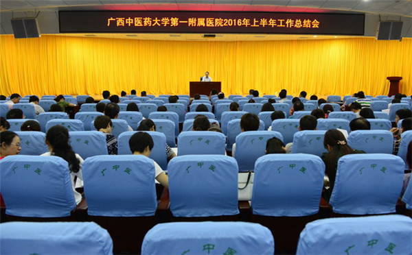 2016年7月29日下午,一附院在住院综合楼裙楼五楼学术厅召开2016年上半年工作总结会。一附院院长黄贵华、党委书记李敏智、副院长桂雄斌、周建国、钟远鸣出席大会,一附院全体中层干部参加大会。大会由一附院院长黄贵华主持。