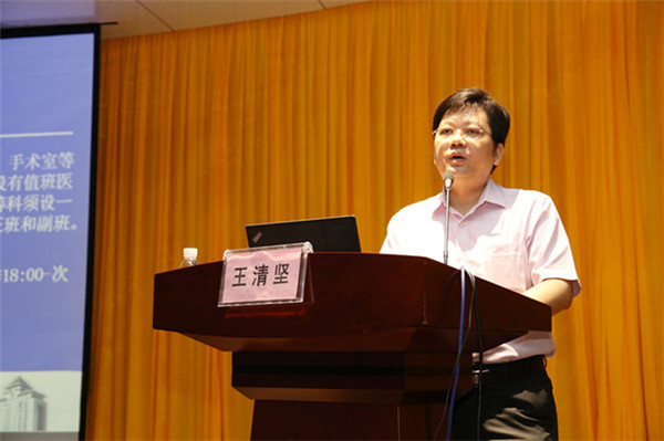 医务部主任王清坚给新员工讲课