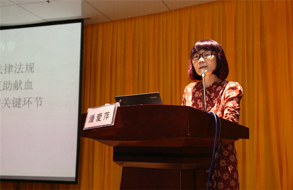 输血科主任潘爱萍给新员工讲课