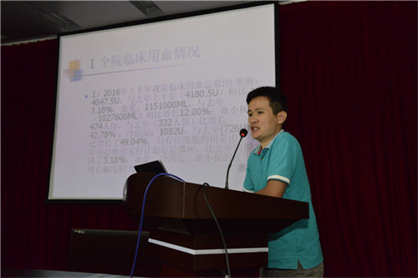 输血科陆占厚对2016年上半年临床用血管理工作进行总结汇报