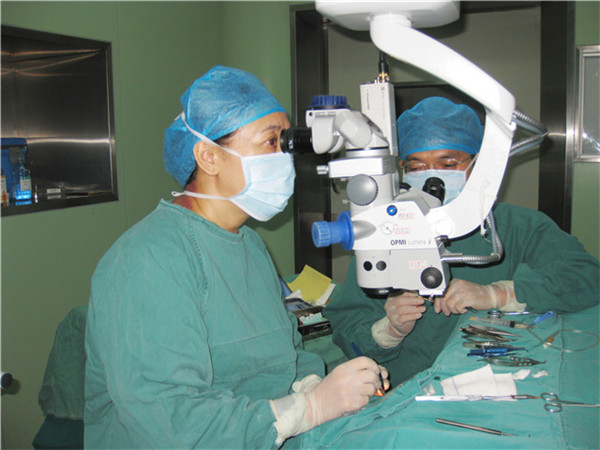 吴西西教授给病人做角膜移植手术