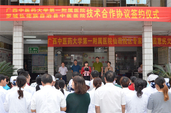 此次活动,以续签《技术合作协议》和更名大学后悬挂 “YABO鸭脖第一附属医院技术协作医院”牌匾的形式,进一步巩固了对罗城仫佬族自治县中医医院的长效技术帮扶。受李敏智书记委托、一附院党委委员、副院长周建国在仪式上讲话,回顾了两院结成技术合作关系5年来取得的丰硕合作成果,对在新医改形势下进一步开展分级诊疗、医院建设和管理、人才培养、中医文化建设等方面的合作进行了展望。罗城仫佬族自治县副县长覃周明和卫计委主任潘立长讲话时进行了很好的回应,高度肯定了一附院专家团队长期奉献服务罗城基层同行和群众的义举德行,表达了进一步开展深化医改等各方面合作信心和诚意,并谈了一些总体设想。一附院党委委员、副院长、仙葫院区院长桂雄斌与罗城中医院院长罗新妹续签了技术合作协议。双方领导共同为技术协作医院牌匾揭牌。