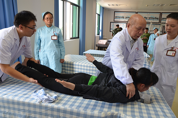 今年已79岁高龄的韦贵康教授,依然神采奕奕,检查、诊断、治疗,每一个环节他都亲力亲为,亲切而热情。田阳县田州镇的黄先生半年来一直被腰腿麻木的毛病所困扰,听闻韦贵康教授亲赴田阳院区,早早就来到医院等候。韦贵康教授在听到黄先生的叙述后,耐心询问病情、认真进行检查,诊断明确后,他反复叮嘱黄先生在日常生活中需要注意的事项,还现场手把手教授黄先生“四步下床法”和“飞燕疗法”等日常康复训练动作。诊疗中,韦贵康教授认真负责的态度和高超的手法治疗,赢得患者赞誉。