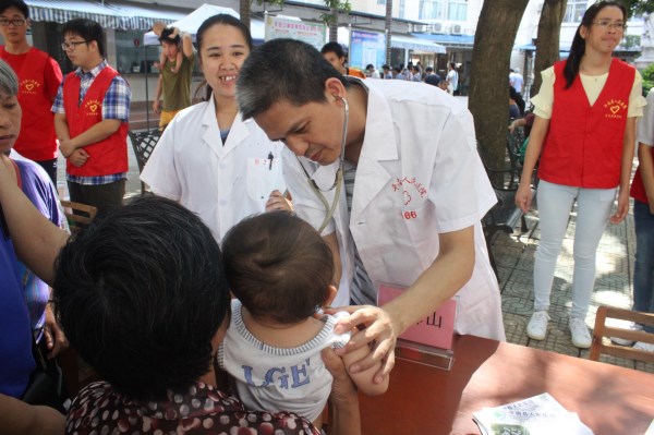3日上午,在贺州市平桂区民政局里,当地百姓听说有省级三甲医院的专家前来开展免费筛查先天性心脏病活动,现场一大早就排起了长长的队伍。附属瑞康医院胸心外科的专家们现场为患者进行了长达五个小时的免费筛查和咨询服务,包括详细询问病史、免费心脏彩超检查进行确诊、介绍各项救助项目的申请流程及救助相关政策等一站式服务,并对患者的进一步治疗耐心解答并提供专业意见和建议。此次免费筛查先天性心脏病活动共接待群众60余人次,共筛查先心阳性患儿20余人,共发放宣传资料400余册。活动中,附属瑞康医院医护人员不辞辛劳、热枕为民的工作态度,得到当地群众的高度好评和赞赏。据初步统计:附属瑞康医院胸心外科自2007年6月始在广西全区开展免费筛查先天性心脏病活动,截止2016年11月,该科深入基层开展免费筛查先天性心脏病活动达30余次,共接待群众3000余人次,共筛查先心阳性患者2000余人。