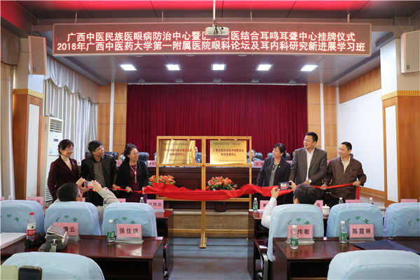 2016年12月10日,由YABO鸭脖第一附属医院主办,广西中西医结合耳鸣耳聋中心成立暨耳内科研究新进展学习班在一附院成功举办。一附院党委副书记、纪委书记、副院长吴西西、副院长桂雄斌、广西优生优育协会陈荔丽会长等领导参加会议。会议开始举行了隆重的广西民族医药眼病防治中心及广西中西医结合耳鸣耳聋中心揭牌仪式,来自全国的著名耳鼻喉科专家学者,以及来自全国各地的学员逾50人,另有进修医生、研究生、本院医生共30余人参加并听取相关专题讲座。会议由一附院副院长桂雄斌主持。