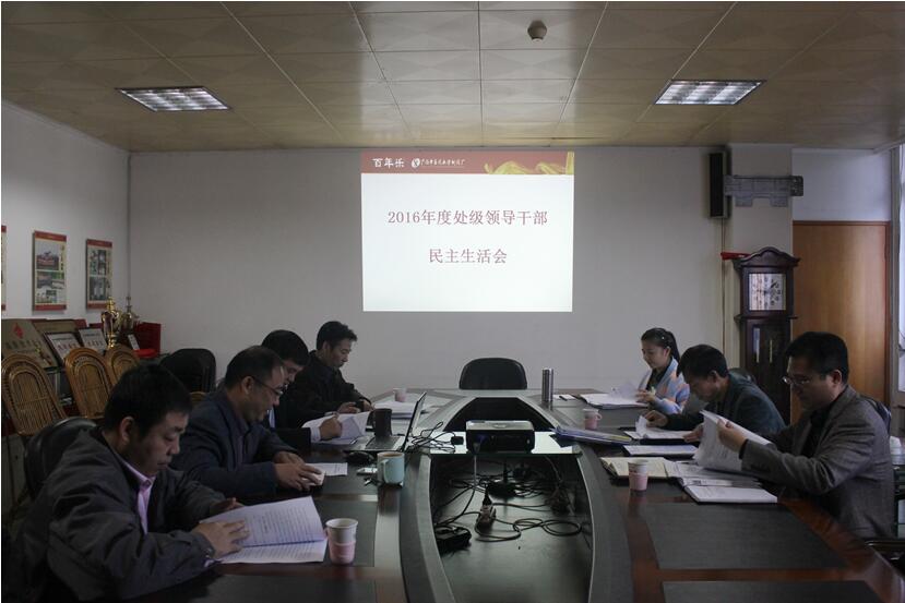 2017年1月10日,制药厂党委召开了2016年度处级领导干部民主生活会。制药厂领导班子全体成员参加了会议,会议由党委书记朱智德同志主持。