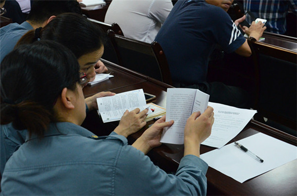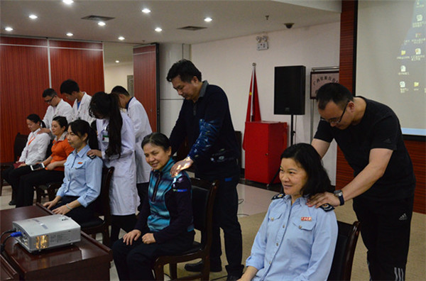 随后,推拿科杨宇主治医师向在场的工作人员形象生动地进行了传统中医导引养生“华佗五禽戏”的教学展示。杨宇医师功法展示动作轻柔、惟妙惟肖,工作人员争相现学现做,在传递中医养生保健知识的同时,也教会工作人员自我锻炼、自我养生的保健方法。讲座的同时,一附院还为自治区政务服务中心一线窗口工作人员发放了中医养生保健手册,深受工作人员的欢迎。讲座结束后,两位专家和四名技师还给自治区政务服务中心一线窗口工作人员体验了中医推拿手法,得到工作人员的一致好评。