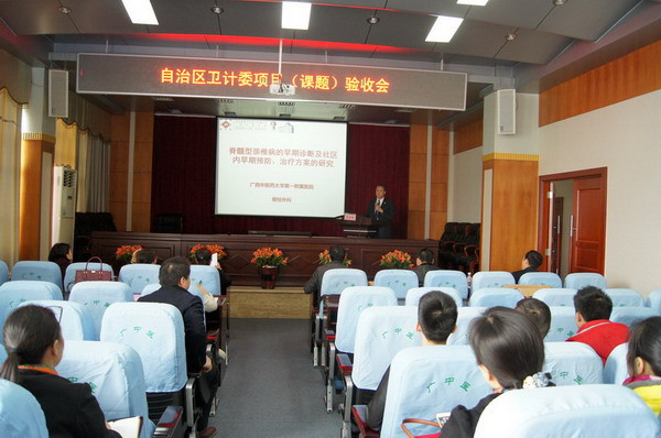 2017年2月27日下午,由广西壮族自治区卫计委科教处主办,YABO鸭脖第一附属医院承办的2017自治区卫计委项目(课题)验收评审工作会议在一附院顺利召开。参会的人员有卫计委科教处的相关负责人,一附院副院长卢健棋,以及来自YABO鸭脖、YABO鸭脖附属瑞康医院、广西骨伤医院、广西医科大学第二附属医院、广西国际壮医医院、自治区江滨医院、南宁市第二人民医院等7家单位11位专家。一附院科研部副主任唐宏亮、各个项目负责人及主要课题成员均到场参加了验收评审会。会上,卢副院长对自治区卫计委多年来给予一附院的关怀和照顾表示感谢。
