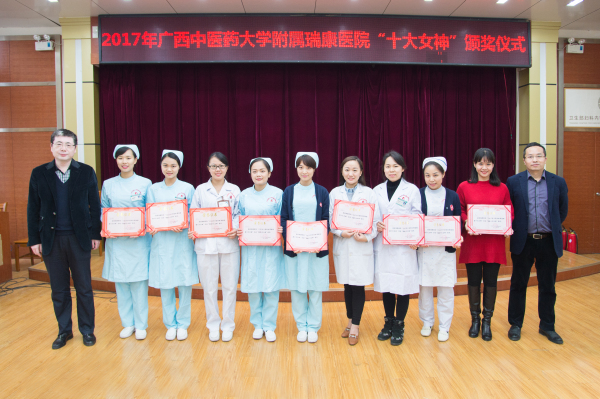 2017年3月17日,瑞康医院在B座十楼楼学术报告厅召开“三生三世十里杏林 票选瑞康十大女神”颁奖活动,医院党委书记高宏君出席活动并讲话,党委副书记、纪委书记黄建民主持活动,医务部、护理部,全体参赛的女职工,各临床科室代表参加颁奖活动。