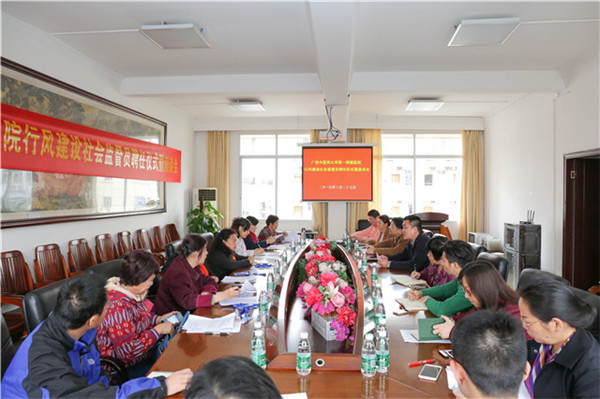 2017年3月27日下午,一附院2017年行风建设社会监督员聘任仪式暨座谈会在办公楼六楼会议室举行。来自社会各行各业的人员共8名被聘任为一附院新一届行风建设社会监督员。一附院常务副院长兼仙葫院区院长桂雄斌以及院办、医务部、护理部、宣传策划办、医保办、门诊部、财务科、药学部、后勤部、行风建设管理办公室、设备科、医患关系协调办公室等部门负责人参加了聘任仪式。聘任仪式由一附院常务副院长桂雄斌主持。