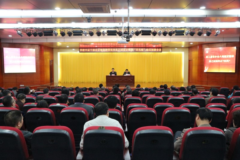 学校党委书记尤剑鹏作重要讲话,副校长罗伟生、吴琪俊、庞宇舟、冷静,总会计师何刚亮,副厅级调研员李培春以及全校处级干部参加会议。庞宇舟主持会议。