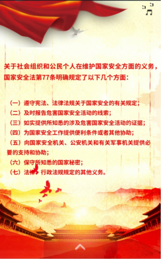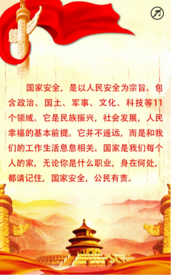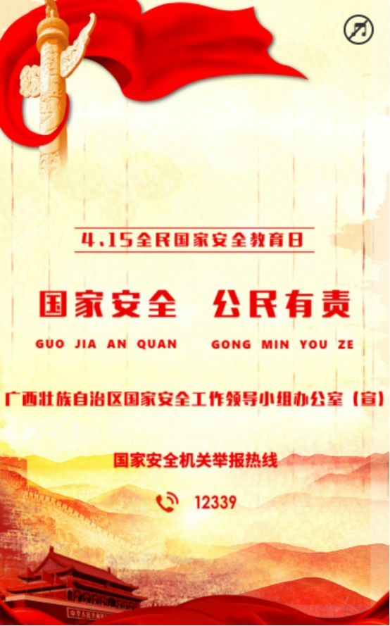 全民国家安全教育日,增强国家安全意识 日期:2017-04-15 点击数: 次 分享到: 点击观看页面及视频: http://hdysyjzx.kuaizhan.com/fp/page/display/58f07bfda86c3b1c4d6ee52a?from=singlemessage&isappinstalled=0 打印正文 关闭本页