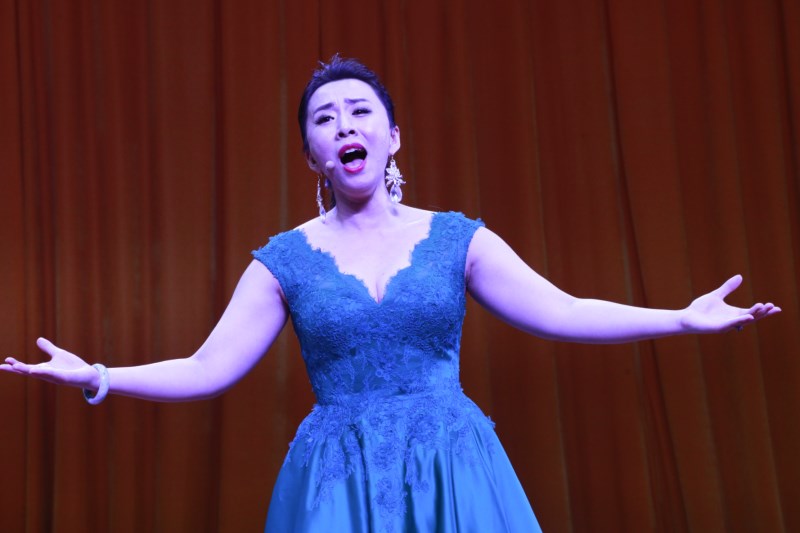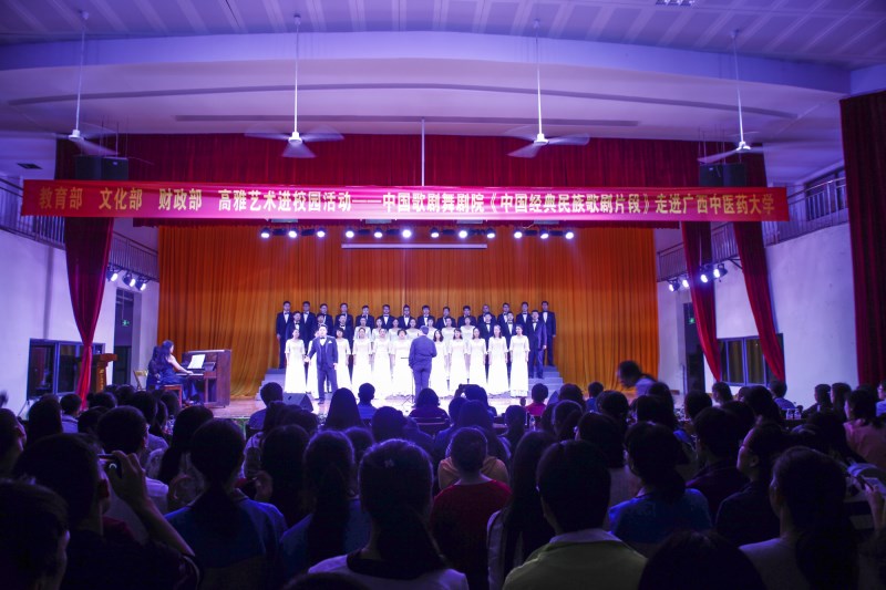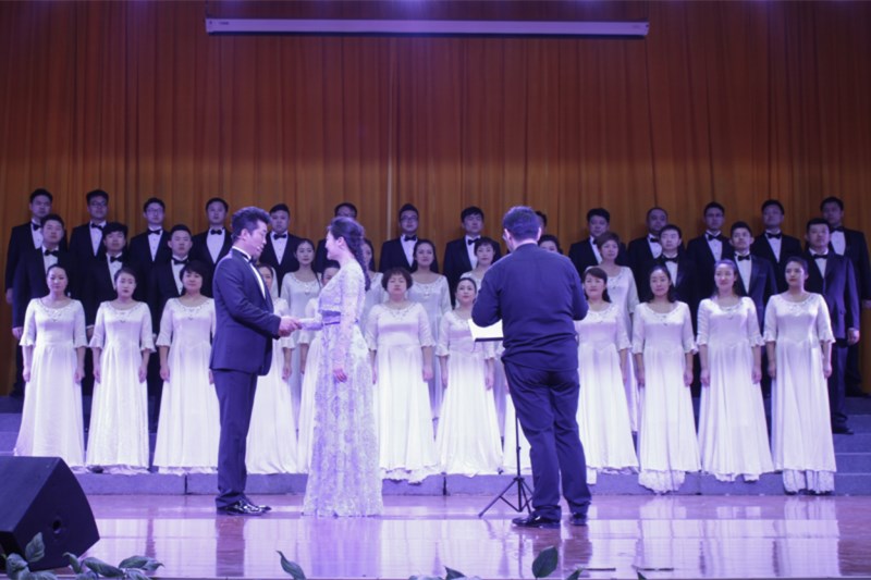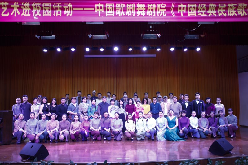 演出在民族歌剧《伤逝》中拉开帷幕。青年男女高音歌唱家毋攀和王晓青演唱了《爱的星辰》《紫藤花》《古城默默盼春来》,通过时而高亢时而低沉的歌声以及丰富的肢体动作,将男女主角追求自由的爱情,却又无法摆脱旧势力的重压,终于导致爱情悲剧的故事演绎得淋漓尽致,现场掌声雷动。青年女艺术家董小涵表演的民族歌剧《洪湖赤卫队》选段《洪湖水浪打浪》《红珊瑚》展现了韩英的浩然正气和革命乐观主义精神;杨乐、蒋宁两位青年女艺术家在民族歌剧《江姐》选段《绣红旗》《红梅赞》将“江姐”这样一个刚正不阿的伟大革命人物形象生动细致的还原在了广大师生面前。民族歌剧《红河谷》选段《朋友》《火》《豺狼来了》《后退半步就不是热血的儿郎》则将整个演出活动带入了高潮,伴随着跌宕起伏的剧情故事以及艺术家们尽心尽力的演出,现场观众的目光紧锁舞台。《小二黑结婚》选段《清凌凌的水蓝莹莹的天》《树上的柿子圆又圆》《我跟你拼了》等讲述了抗日战争时期民兵英雄刘二黑,与同村少女子小芹相爱,遭到迷信思想严重的双方父母反对,经过抗争终于从重重的封建压制下得到了胜利的故事,牵动着在场的每一位观众的心。伴随着台下经久不息的掌声,整场表演划上了圆满的句号。