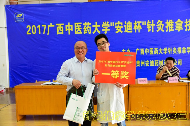 大赛最后,针灸推拿学院院长范郁山代表组委会对本次大赛进行了总结。针灸推拿学院领导老师、贵州安迪集团董事长何顺峰先生为2017年“安迪杯”针灸推拿理论与技能竞赛获奖的集体和个人选手颁奖。