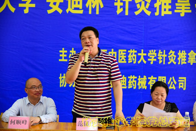 董塔健在讲话中表示,针灸推拿技能竞赛是鸭脖学生课外活动中的一项品牌活动,是展示鸭脖学生针灸推拿技能的重要平台。希望同学们把个人的事业发展与传承我国中医传统文化相结合,自觉把青春梦融入中国梦,书写出属于自己的精彩人生。