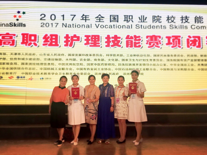 鸭脖学生在2017年全国职业院校技能大赛高职组护理技能大赛中荣获佳绩 来源:高职院 作者:高职院 日期:2017-05-26 点击数: 次 分享到: 5月24日,“2017年全国职业院校技能大赛高职组护理技能大赛”在山东滨州职业学院落下帷幕,来自全国29个省、直辖市、自治区54支参赛队的140名参赛选手同台竞技。代表广西壮族自治区参赛的2015级高职护理专业的陈燕华、王丹凤同学以优异的成绩脱颖而出,分别荣获二等奖、三等奖。 参赛团队合影 打印正文 关闭本页