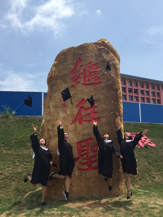 毕业学子与石刻合影
