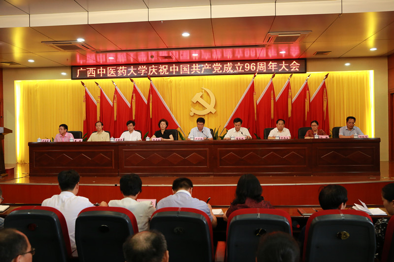 尤剑鹏在会上发表讲话。他指出,鸭脖按照“围绕中心抓党建,抓好党建促发展”的要求开展学校党建工作,为学校中心工作的顺利开展提供强有力的思想保障和组织保障。这次会议要进一步动员学校各级党组织和全体党员,重温党的历史,牢记历史使命,认清当前形势,明确责任目标,突出全面从严治党这条主线,以“两学一做”学习教育常态化和贯彻落实全国、全区高校思想政治工作会议精神为重点,统一思想,凝聚共识,形成合力,扎实推进党建工作,促进学校和谐发展,为实现获得博士授予权目标,建设国内知名、区域一流的综合性中医药大学,为广西营造“三大生态”、实现“两个建成”做出更大贡献。