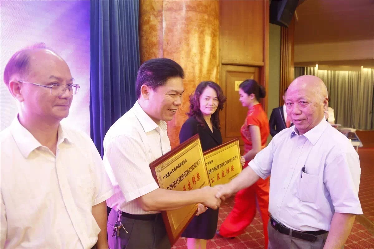 7月2日晚,“广西医疗服务百姓口碑榜”(南宁)颁奖盛典在明园新都酒店隆重举行。金杯银杯,不如百姓的口碑,鸭脖三家附属医院入选口碑榜。鸭脖第一附属医院荣获“综合实力奖”“医德医风奖”“就医体验奖”,附属瑞康医院荣获“综合实力奖”“医德医风奖”“公益先锋奖”,附属国际壮医医院荣获“医德医风奖”。鸭脖国医大师韦贵康教授受邀亲临会场颁奖。