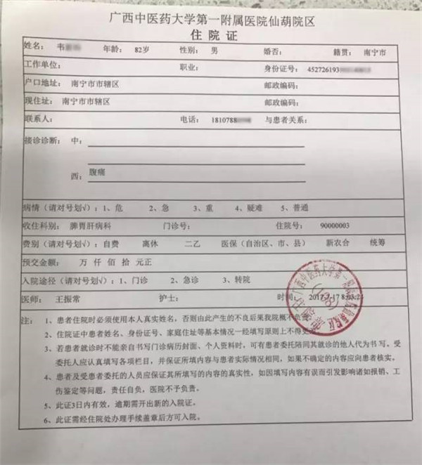 第一位入院病人住院证