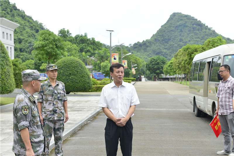 在中国人民解放军建军90周年到来之际,7月21日,学校党委副书记董塔健率领校党委办公室、校长办公室、党委宣传部、武保部、第一附属医院、附属瑞康医院、附属国际壮医医院、高职院、制药厂、赛恩斯新医药学院等单位、部门代表组成的慰问团,前往鸭脖军民共建单位凭祥市某部队进行慰问,并开展爱国主义教育活动。