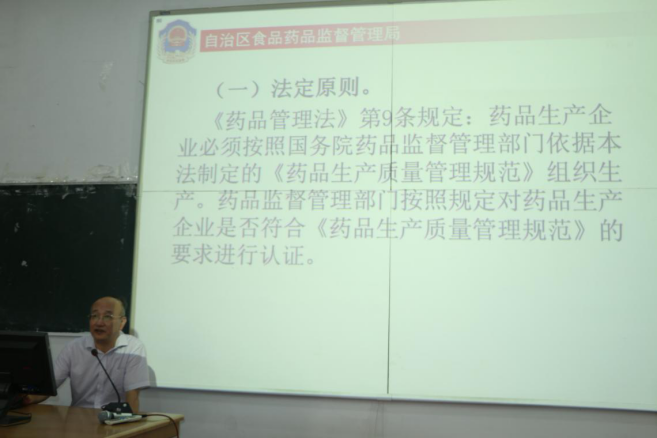 广西食品药品监督管理局张建良处长授课现场